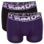 De ene boxershort is violet gekleurd met zwart en de ander is zwart met violet.